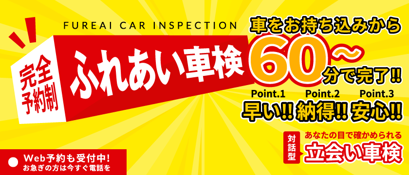 対話型立会い車検で、お客様のお車を検査し、メンテナンス整備はお客様判断で選択できます。おサイフにも環境にも優しい車検です。あなたのお車の安全管理はぜひ当「ふれあい車検」にお任せ下さい。
